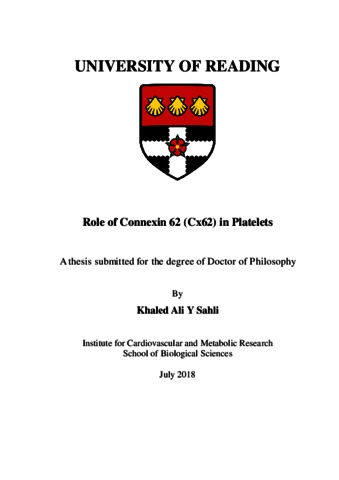 Sahli, K. A. Y. (2018) Role of Connexin 62 (Cx62) in platelets. PhD thesis, University of Reading. doi: 10.48683/1926.00084940