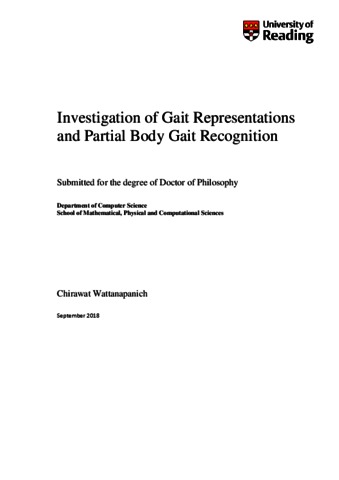 Wattanapanich, C. (2019) Investigation of gait representations and partial body gait recognition. PhD thesis, University of Reading. doi: 10.48683/1926.00084979