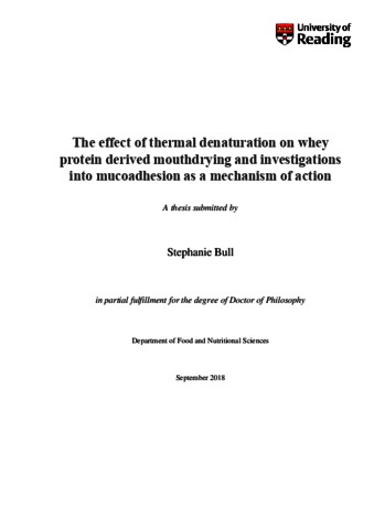 The effect of thermal denaturation on whey protein derived mouthdrying and investigations into mucoadhesion as a mechanism of action.