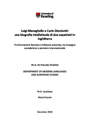 Pozzolo, M. (2019) Luigi Meneghello e Carlo Dionisotti: una biografia intellettuale di due espatriati in Inghilterra. PhD thesis, University of Reading. doi: 10.48683/1926.00085036