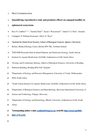 Quantifying reproductive state and predator effects on copepod motility in ephemeral ecosystems.