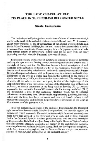 Coldstream, N. (1985) The Lady chapel at Ely: its place in the English decorated style. Reading Medieval Studies, XI. pp. 1-30. ISSN 0950-3129