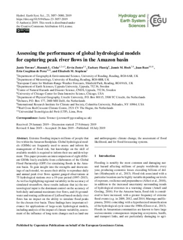 Assessing the performance of global hydrological models for capturing peak river flows in the Amazon basin.