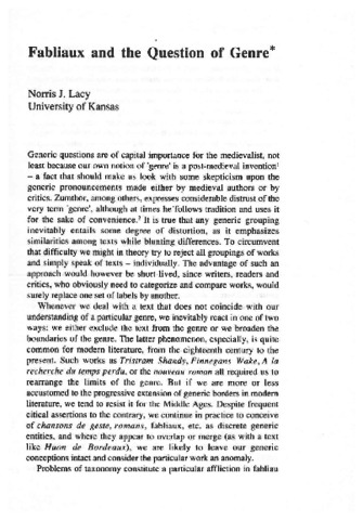 Lacy, N. J. (1987) Fabliaux and the question of genre. Reading Medieval Studies, XIII. pp. 25-34. ISSN 0950-3129