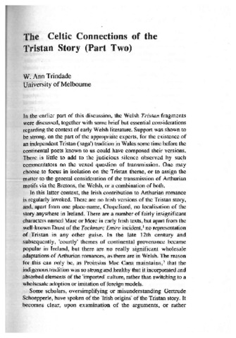 Trindade, W. A. (1987) The Celtic connections of the Tristan story (part two). Reading Medieval Studies, XIII. pp. 71-80. ISSN 0950-3129