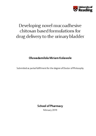 Kolawole, O. M. (2019) Developing novel mucoadhesive chitosan based formulations for drug delivery to the urinary bladder. PhD thesis, University of Reading. doi: 10.48683/1926.00085229
