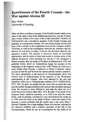 Noble, P. (1999) Eyewitnesses of the fourth crusade - the war against Alexius III. Reading Medieval Studies, XXV. pp. 75-89. ISSN 0950-3129