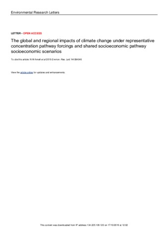 The global and regional impacts of climate change under representative concentration pathway forcings and shared socioeconomic pathway socioeconomic scenarios.
