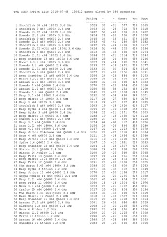 This is the Chess Engine Rating list of 2019-07 from Svenska schackdatorföreningen, the Swedish Chess Computer Association. SSDF has produced the list for 22 years. Here we supply the 'Selected 50' subset with headline notes on each engine. SSDF's 2019-07 long list and hw/change logs may also be downloaded from here.