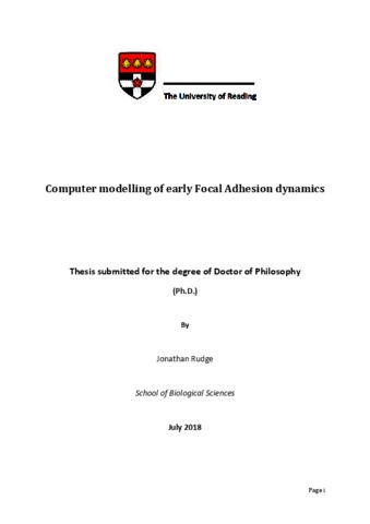 Rudge, J. (2019) Computer modelling of early focal adhesion dynamics. PhD thesis, University of Reading. doi: 10.48683/1926.00085359