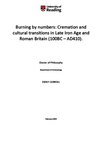 Carroll, E. (2019) Burning by numbers: cremation and cultural transitions in Late Iron Age and Roman Britain (100BC – AD410). PhD thesis, University of Reading. doi: 10.48683/1926.00085360