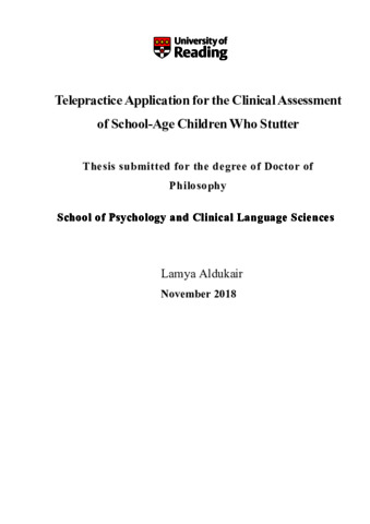 Aldukair, L. (2019) Telepractice application for the clinical assessment of school-age children who stutter. PhD thesis, University of Reading. doi: 10.48683/1926.00085380