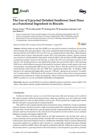 Uncontrolled Keywords biscuits, upcycled food by-products, defatted sunflower seed flour, sensory QDA, TPA, colour, antioxidant capacity, protein enrichment, functional foods, valorisation