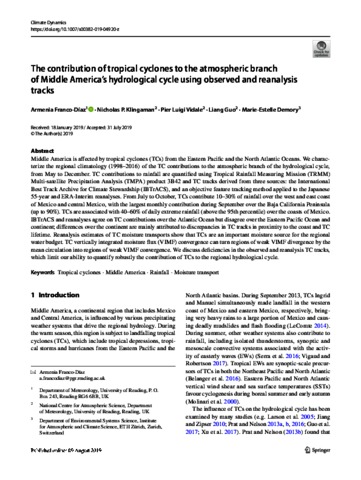 The contribution of tropical cyclones to the atmospheric branch of Middle America's hydrological cycle using observed and reanalysis tracks.