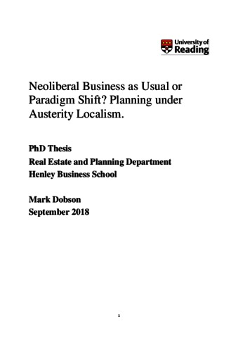Neoliberal business as usual or paradigm shift? Planning under austerity localism.