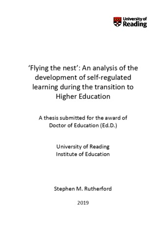 Rutherford, S. M. (2019) ‘Flying the nest’: an analysis of the development of self-regulated learning during the transition to Higher Education. EdD thesis, University of Reading.