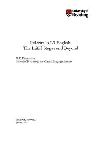 Puig Mayenco, E. (2019) Polarity in L3 English: the initial stages and beyond. PhD thesis, University of Reading. doi: 10.48683/1926.00085481