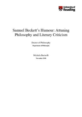 Samuel Beckett’s humour: attuning philosophy and literary criticism.