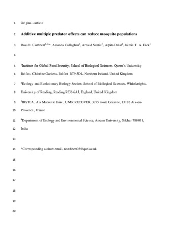 Additive multiple predator effects can reduce mosquito populations.