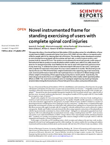Novel instrumented frame for standing exercising of users with complete spinal cord injuries.