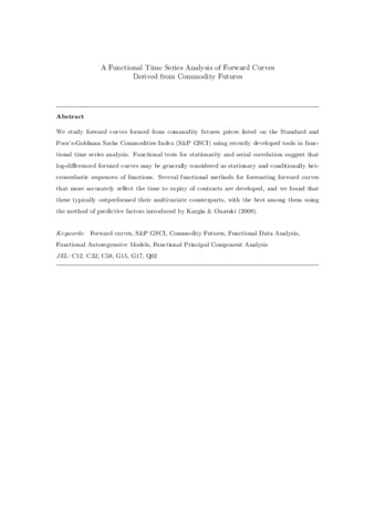 We study forward curves formed from commodity futures prices listed on the Standard and Poor's-Goldman Sachs Commodities Index (S&P GSCI) using recently developed tools in functional time series analysis. Functional tests for stationarity and serial correlation suggest that log-differenced forward curves may be generally considered as stationary and conditionally heteroscedastic sequences of functions. Several functional methods for forecasting forward curves that more accurately reflect the time to expiry of contracts are developed, and we found that these typically outperformed their multivariate counterparts, with the best among them using the method of predictive factors introduced by Kargin and Onatski (2008).