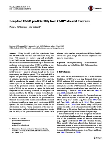 Long-lead ENSO predictability from CMIP5 decadal hindcasts.
