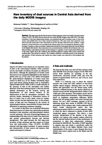 New inventory of dust sources in Central Asia derived from the daily MODIS imagery.