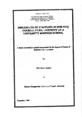 Hooper, E. J. (1999) Influences on completion for NVQ courses in management at a university business school. DBA thesis, Henley Business School, University of Reading.