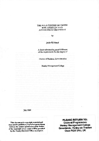 El-Murad, J. (2002) The relationship between risk attitude and advertising creativity. DBA thesis, Henley Business School, University of Reading.