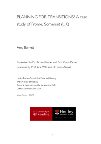 Burnett, A. (2019) Planning for transitions? A case study of Frome, Somerset (UK). PhD thesis, University of Reading. doi: 10.48683/1926.00085827