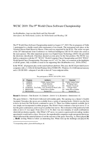 The 'WCSC 2019' World Chess Software Championship was the ICGA's ninth experimental test of computer chess software in a neutral hardware environment. Held in Macau, this event was won by KOMODO with JONNY and CHIRON scarcely separable in second and third.