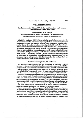 Van Emden, H. F., Barclay, M. V. L. and Garner, B. (2017) Recollections on the life and work of a great immature-beetle pioneer, Fritz Isidore van Emden (1898-1958). Acta Entmologica Musei Pragae, 57 (2). pp. 839-842. ISSN 0374-1036