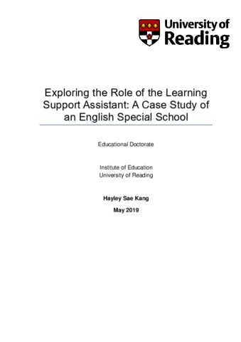 Sae Kang, H. (2019) Exploring the role of the learning support assistant: a case study of an English special school. EdD thesis, University of Reading. doi: 10.48683/1926.00086006