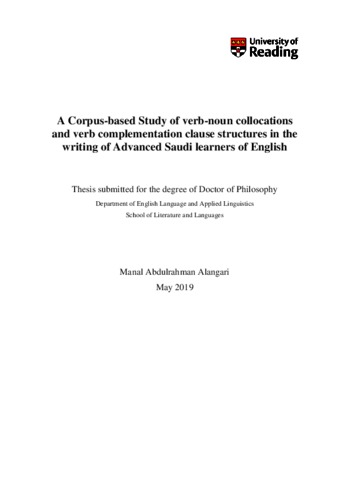 This thesis reflects the shift in the study of collocations towards lexico-grammatical patterns through a series of three corpus-based studies on academic writing. The first study adopts a phraseological approach to explore the use of adjective-noun and verb-noun lexical collocations in the academic writing of Arab learners as compared to native speakers. The comparison between two corpora, the TEEP-ArSL and the LOCNESS-A-Level, reveals that verb-noun (VN) collocations are particularly difficult for Arab learners given that more than a quarter of the VN collocations they produced are misused. Studies 2 and 3 adopt a novel approach to the description and analysis of academic writing in the discipline of applied linguistics. These two studies focus on VN collocations by embedding them in their verb complementation clause structures, specifically noun phrase complementation. In Study 2, expert writers’ use of verb complementation clause structures and VN collocations therein are examined and compared in two corpora of published research articles in the field of applied linguistics in English and Arabic, the academic English Corpus (AEC) and the academic Arabic corpus (AAC). Study 3 investigates novice writers’ use of the same clause structures and VN collocations in two corpora of novice native and non-native students’ university exam writing - the novice native corpus (NNC) and the novice Saudi corpus (NSC). The analysis of the data in Studies 2 and 3 draws on Quirkian clause structures (Quirk, Greenbaum, & Leech, 1985) for the syntactic representation, and on Frame Semantics (Fillmore, 1982) for the identification of the semantic roles of the elements involved in the clause structures. The two studies explore the use of single-word and multi-word verbs in 15 clause structures, including the copular, transitive, complex copular, and ditransitive. The association between the verb and the clause structure is established using the measure of faithfulness (Römer, O’Donnell, & Ellis, 2015). The comparison of expert academic writing in Study 2 serves as baseline data for the comparison of novice academic writing in Study 3. The results of Study 2 show that prepositional verbs are frequently used in academic English and Arabic, despite the fact that they are seldom addressed in Arabic grammar books. The results also highlight phrasal verbs as one of the prominent characteristics of current English academic writing in the field of ii Study 3 explores advanced learners’ use of the 15 selected clause structures and the choices of verbs therein and whether there is a tendency to overuse, underuse or misuse these clause structures and VN collocations. It makes use of the results of study 2 to trace the influence of the first language, Arabic, on the use of verb complementation clause structures by advanced Saudi learners of English. The results of study 3 show that advanced Saudi learners use significantly more tokens in the copular, the transitive, and the prepositional type 1 clause structures than native speakers. However, the difference between the use of types is not significant which reveals an area of weakness in the writing of advanced Saudi learners related to the heavy reliance on a limited set of high frequency verbs, e.g. have, use, and say. Although native speakers used the phrasal verb clause structure more often than Saudi learners, both groups of novice writers used far fewer phrasal verbs than expert English writers; possible explanations for this underuse are investigated. The thesis concludes with a variety of pedagogical implications that could be of great benefit for language teachers and textbook and dictionary designers.