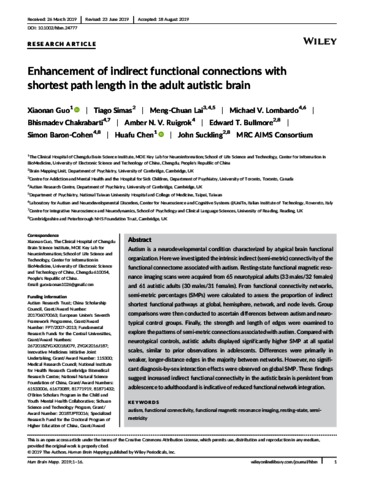Enhancement of indirect functional connections with shortest path length in the adult autistic brain.