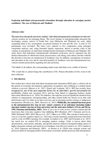 Individual entrepreneurial orientation in higher education and unsettling emerging market conditions: The cases of Malaysia and Thailand.