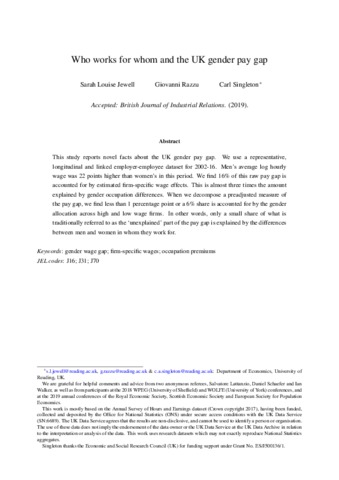Uncontrolled Keywords | gender wage gap, firm-specific wages, occupation premiums |