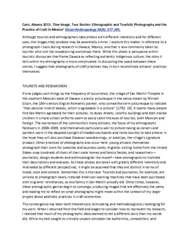 One image, two stories: Ethnographic and touristic photography and the practice of craft in Mexico.