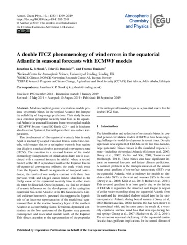Shonk JKP, Guilyardi E, Toniazzo T, Woolnough SJ and Stockdale T; 2018. Identifying Causes of Western Pacific ITCZ Drift in ECMWF System 4 Hindcasts. Climate Dynamics 50: 939—954.