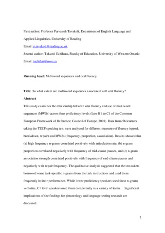 Tavakoli, P. orcid id iconORCID: https://orcid.org/0000-0003-0807-3709 and Uchihara, T. (2020) To what extent are multiword sequences associated with oral fluency? Language Learning, 70 (2). pp. 506-547. ISSN 0023-8333 doi: 10.1111/lang.12384