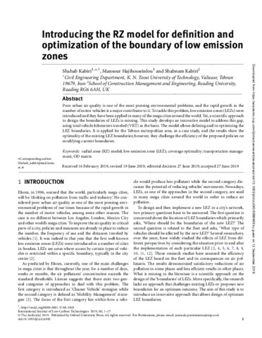 Introducing the RZ model for definition and optimization of the boundary of low emission zones.