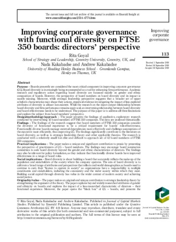 Improving corporate governance with functional diversity on FTSE 350 boards: directors' perspective.