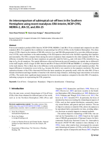 An intercomparison of cut-off lows in the Southern Hemisphere using recent reanalyses: ERA-Interim, NCEP-CFRS, MERRA-2, JRA-55, and JRA-25.