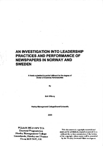 Wilberg, E. (2003) An investigation into leadership practices and performance of newspapers in Norway and Sweden. DBA thesis, Henley Business School, University of Reading.