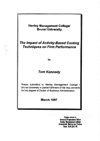 Kennedy, T. (1997) The impact of activity-based costing techniques on firm performance. DBA thesis, Henley Business School, University of Reading.