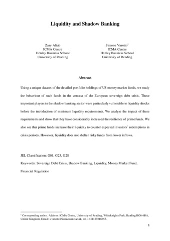 Uncontrolled Keywords Sovereign Debt Crisis, Shadow Banking, Liquidity, Money Market Fund, Financial Regulation