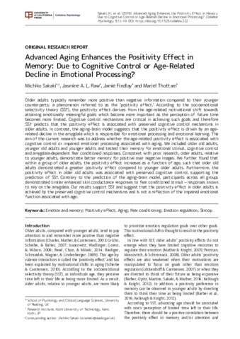 due to cognitive control or age-related decline in emotional processing?
