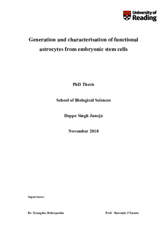 Juneja, D. S. (2019) Generation and characterisation of functional astrocytes from embryonic stem cells. PhD thesis, University of Reading. doi: 10.48683/1926.00086317