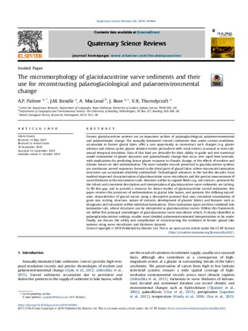 Palmer, A. P., Bendle, J. M., MacLeod, A., Rose, J. and Thorndycraft, V. R. (2019) The micromorphology of glaciolacustrine varve sediments and their use for reconstructing palaeoglaciological and palaeoenvironmental change. Quaternary Science Reviews, 226. 105964. ISSN 0277-3791 doi: 10.1016/j.quascirev.2019.105964