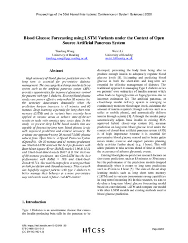 Blood glucose forecasting using LSTM variants under the context of open source artificial pancreas system.